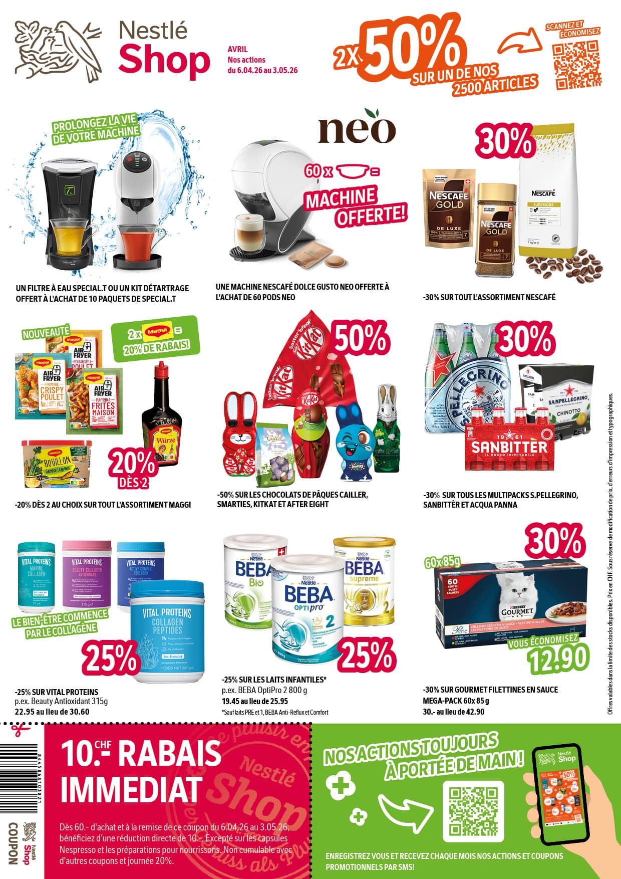 DÈS 60.- D'ACHAT ET À LA REMISE DE CE COUPON DU 6.04.26 AU 3.05.26, BÉNÉFICIEZ D'UNE RÉDUCTION DIRECTE DE 10.-